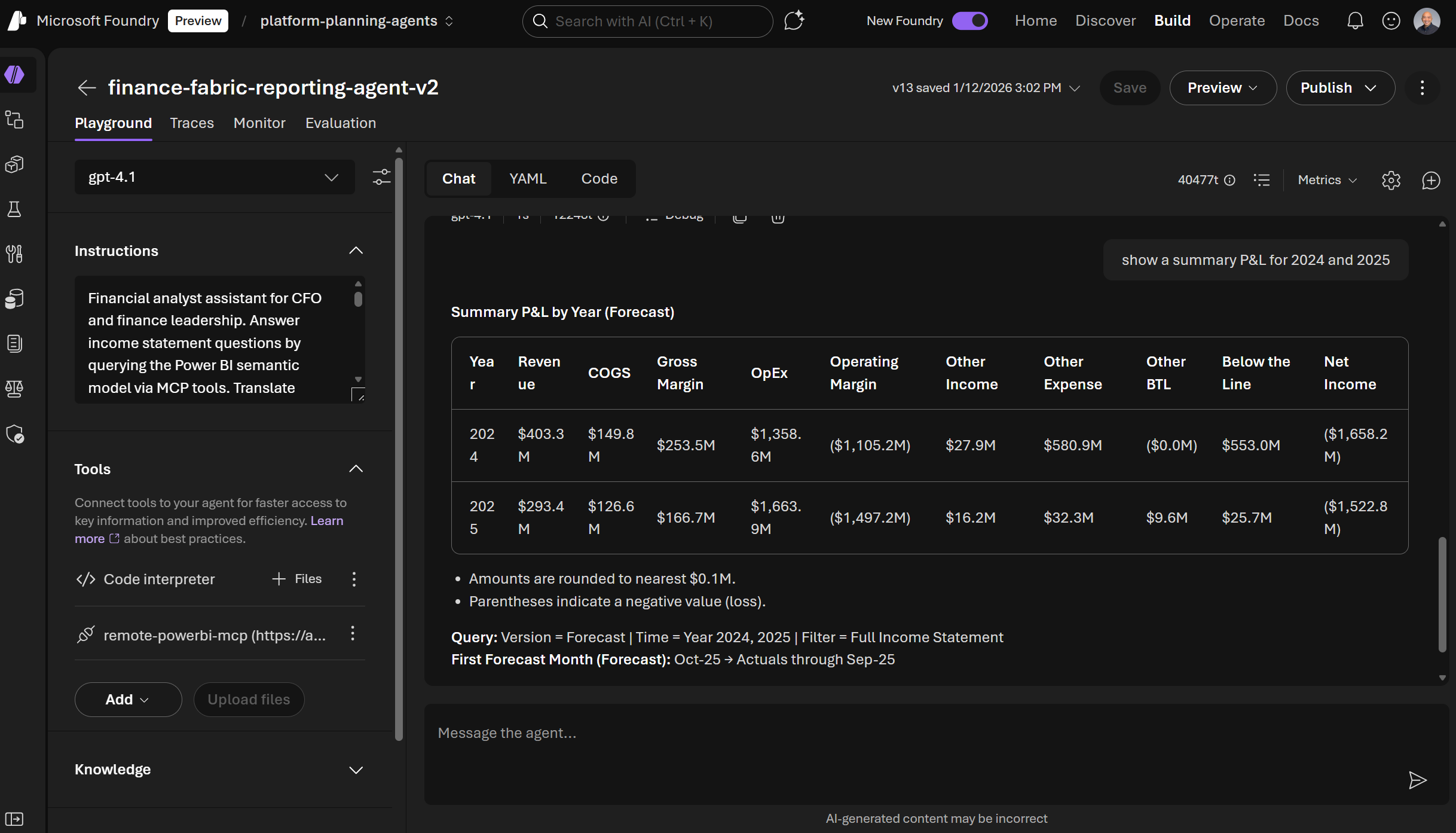 For more sophisticated, high-volume, or consistent forecasting use cases such as workforce planning or demand forecasting, full-code models can be built in SQL or Python in Fabric and connected to ML models if needed. SQL and Python are much more accessible now with LLM-assisted coding.